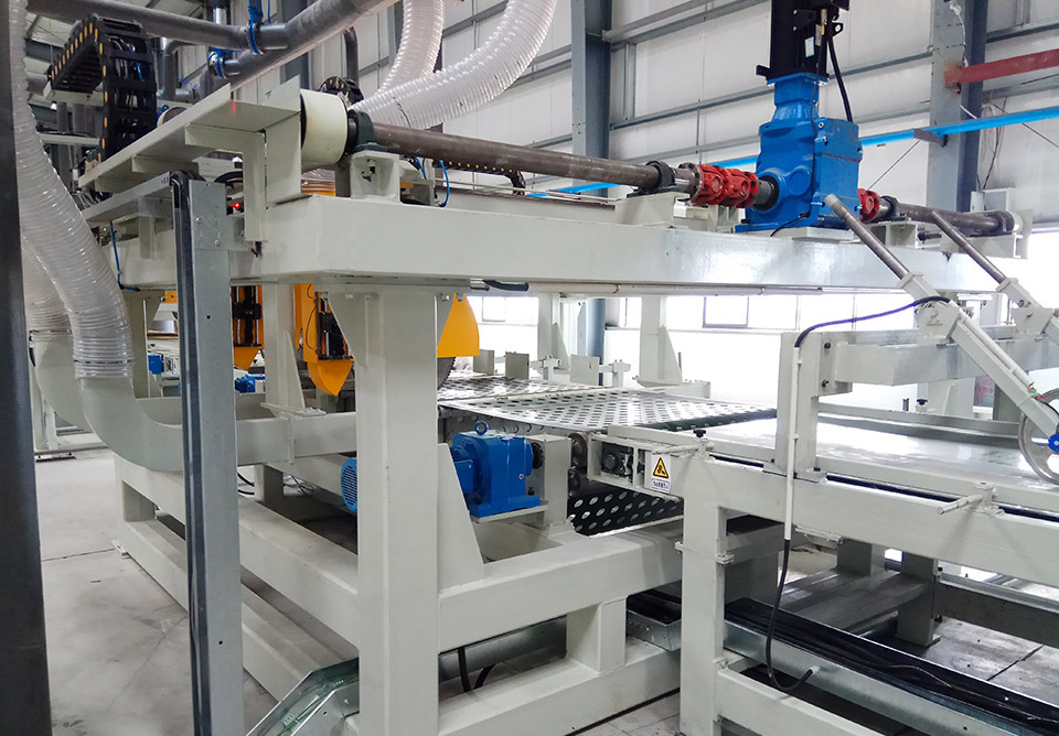 橫切飛鋸機(jī)由輸送皮帶機(jī)和橫切機(jī)組組成,用于棉板或氈的橫向切割。