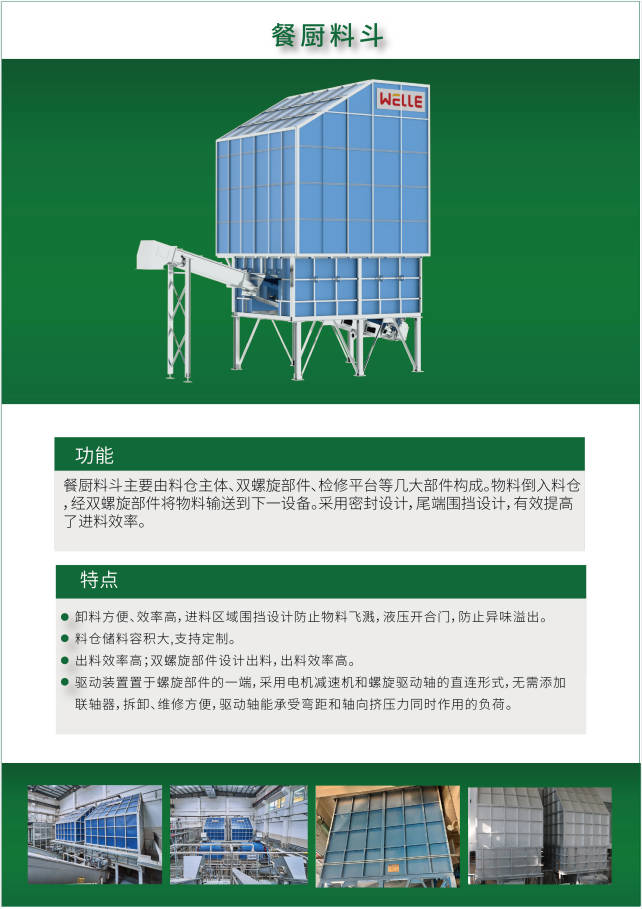 產(chǎn)品簡(jiǎn)述: 料斗采用成熟、先進(jìn)、可靠的技術(shù),主要功能具有緩存、瀝水和輸送。緩存、瀝水能力強(qiáng),有效避免高峰期車輛排隊(duì)。主要結(jié)構(gòu)集氣罩、料倉(cāng)、螺旋軸、減速電機(jī)驅(qū)動(dòng)、固定軸承端、支架等。底部螺旋輸送機(jī)的設(shè)計(jì)及負(fù)荷能力合理,能適應(yīng)進(jìn)料斗的容積及物料特性。料斗底部螺旋設(shè)漏水…